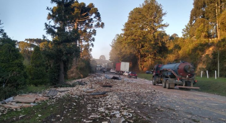 Caminhão saí da pista e toma na BR-280 em Rio Negrinho-SC