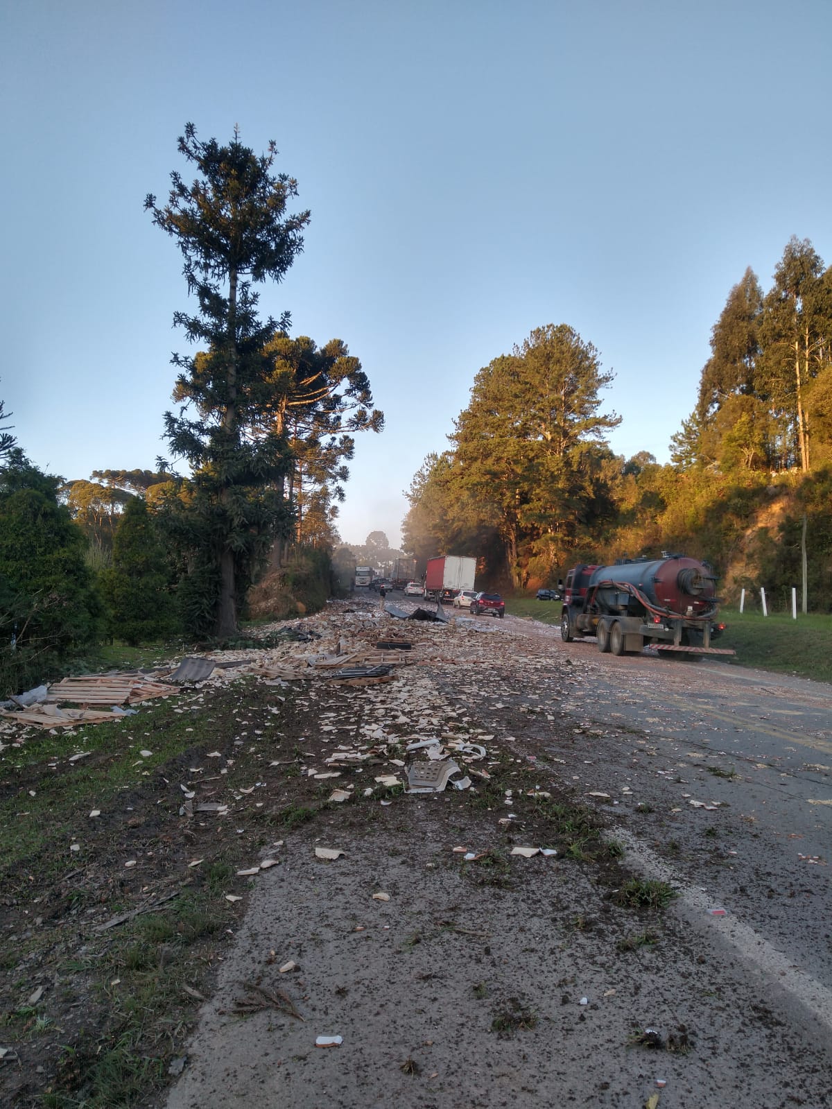 • Ocorrência: Acidente de trânsito/Saída de pista de caminhão com tombamento da carga