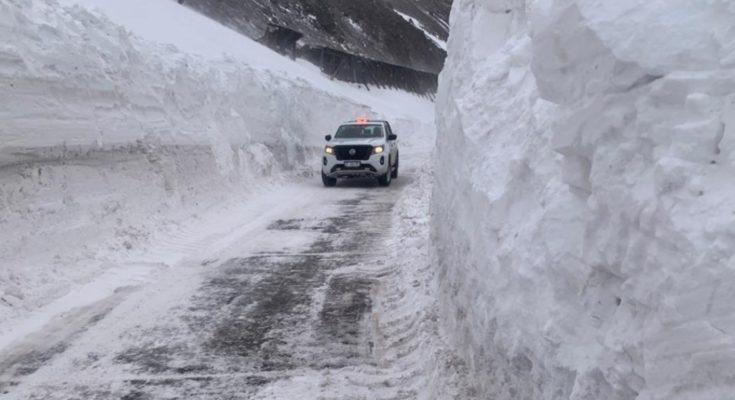 Trabajos de Vialidad Nacional delegación Mendoza, en medio del temporal de nieve en Las Cuevas. CONTINÚA CERRADO EL SISTEMA INTEGRADO CRISTO REDENTOR, PASO alternativos MAMUIL MALAL altura San Martin de Los Andes CARDENAL SAMORE