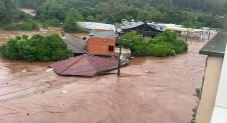 O Rio Grande do Sul está enfrentando fortes chuvas, causando inundações no município de Sinimbu, no Vale do Rio Pardo. As águas dos rios ‘Pardinho’ e ‘Pequeno’ atingiram o telhado de algumas casas, levando a Defesa Civil a evacuar os moradores devido ao risco de inundação.