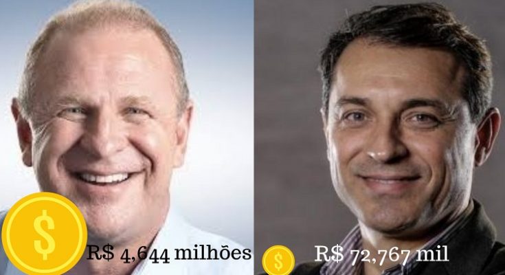 Se as diferenças entre Gelson Merisio (PSD) e o Comandante Moisés (PSL), que disputam o segundo turno em Santa Catarina, fossem a primazia de ter o apoio do presidenciável Jair Bolsonaro (PSL) – resolvida no vídeo divulgado na última quarta (10), que você confere neste blog em (https://bit.ly/2OYyC7i) – ou a estrutura de equipes formadas para apoiar a candidatura, saiba em que, em termos de arrecadação, não há dúvida de que este é um embate entre o “milhão e o tostão”.
