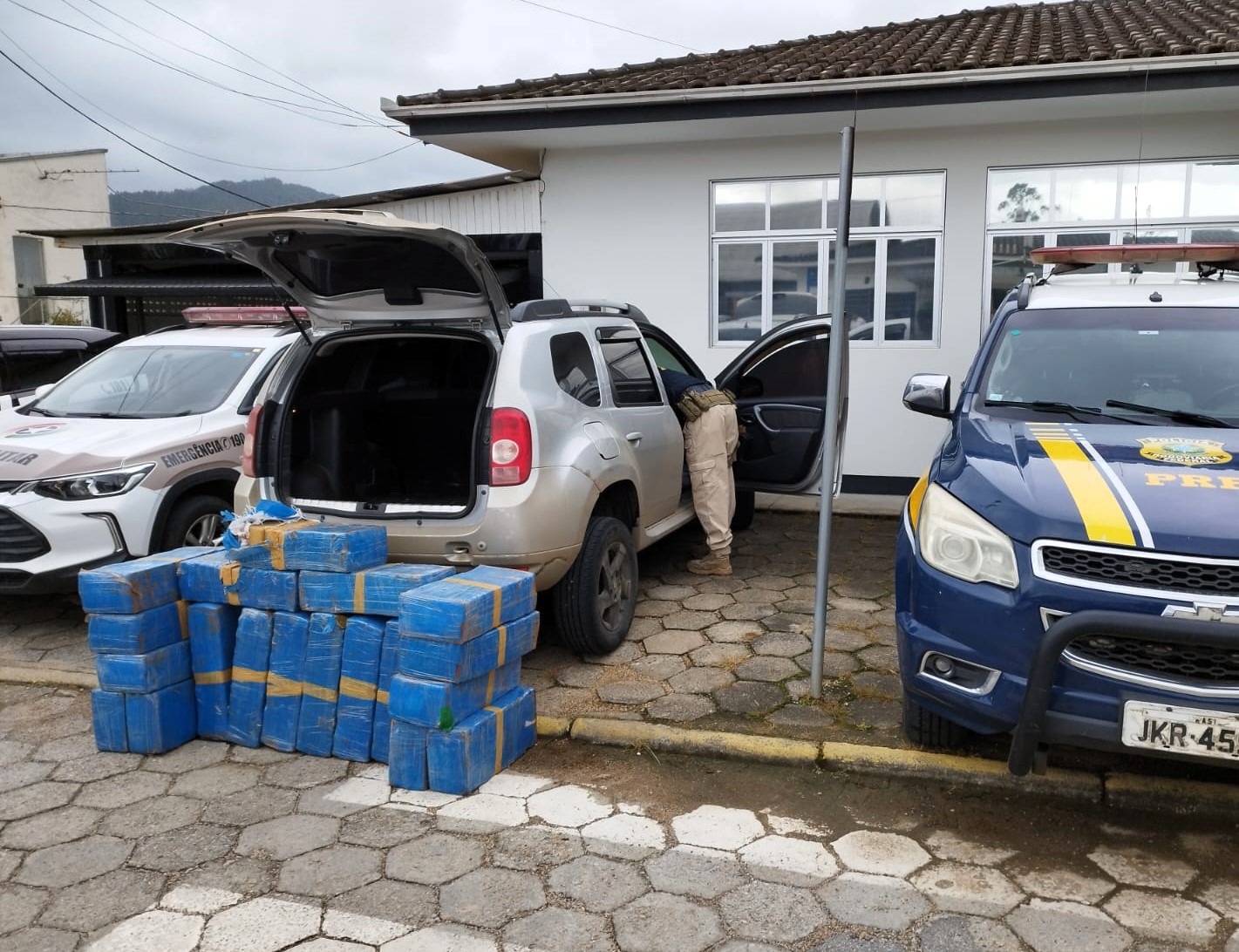 Depois de troca de informações entre Polícia Rodoviária Federal, Polícia Militar de SC e a Polícia Civil de SC, o veículo suspeito de trazer entorpecentes foi localizado e abordado na manhã desta quinta (23), descendo a Serra do Corvo Branco (SC-370), município de Grão-Pará.