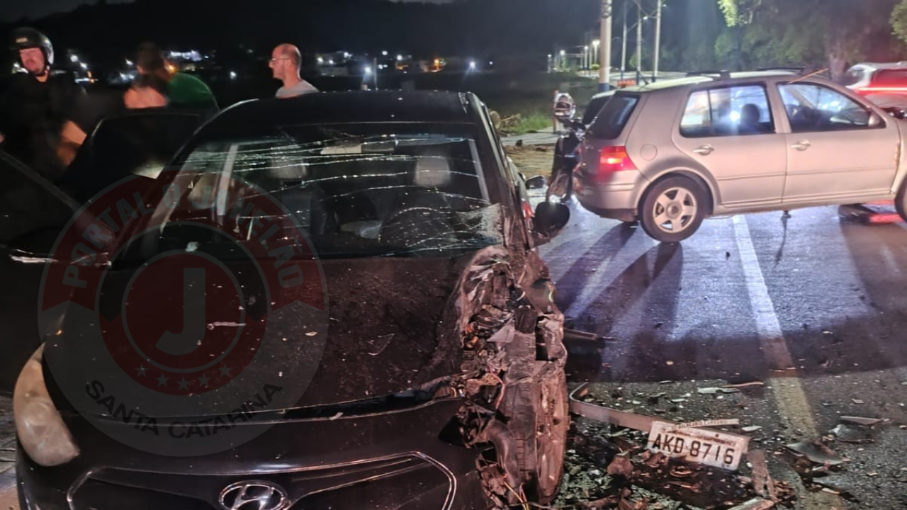 Camboriú, 12 de abril de 2026 – Um grave acidente na Avenida Santo Amaro, no bairro São Francisco de Assis, mobilizou equipes de resgate na noite de sábado (11). Por volta das 23h30, um Volkswagen Golf prata, dirigido por um motorista embriagado, ultrapassou vários veículos no sentido Camboriú e colidiu frontalmente com um Hyundai i30 preto que seguia no sentido Balneário Camboriú.