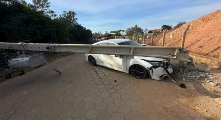 Testemunhas relataram que o carro perdeu o controle e atingiu um poste grande, que, por sua vez, derrubou um poste menor adjacente. A força do impacto deixou fios de alta tensão caídos no solo e um dos postes atravessando a via, criando uma situação perigosa.