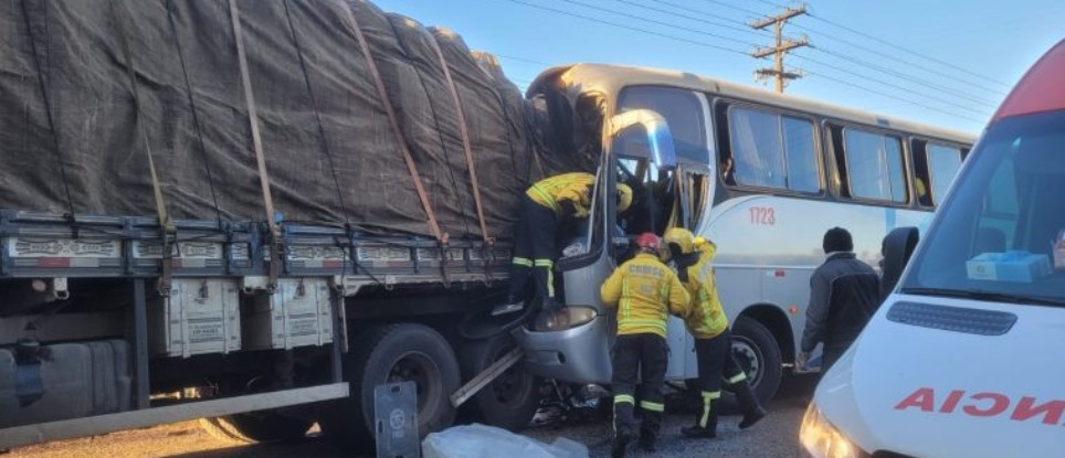 Um acidente grave ocorreu na SC-355, em Vila Fuji, Fraiburgo, na manhã desta terça-feira (13). Um ônibus da Castilho & Cia, que transportava funcionários da empresa Fischer, colidiu na traseira de um caminhão. No total, pelo menos 33 pessoas foram encaminhadas para atendimento médico. O motorista do ônibus ficou preso nas ferragens e precisou ser desencarcerado pelos bombeiros, mas estava consciente durante o resgate.