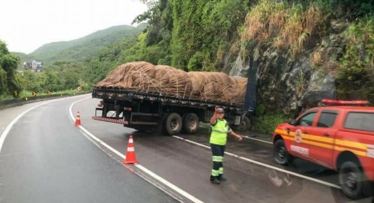Um acidente envolvendo um caminhão de carga foi registrado por volta das 8h da manhã desta terça-feira (03), na descida do Morro do Boi, sentido Sul, entre as cidades de Balneário Camboriú e Itapema. O motorista de um caminhão de carga perdeu o controle e colidiu contra rochas na descida do morro. O trânsito é intenso no local. Ainda não se sabe o estado de saúde do motorista.