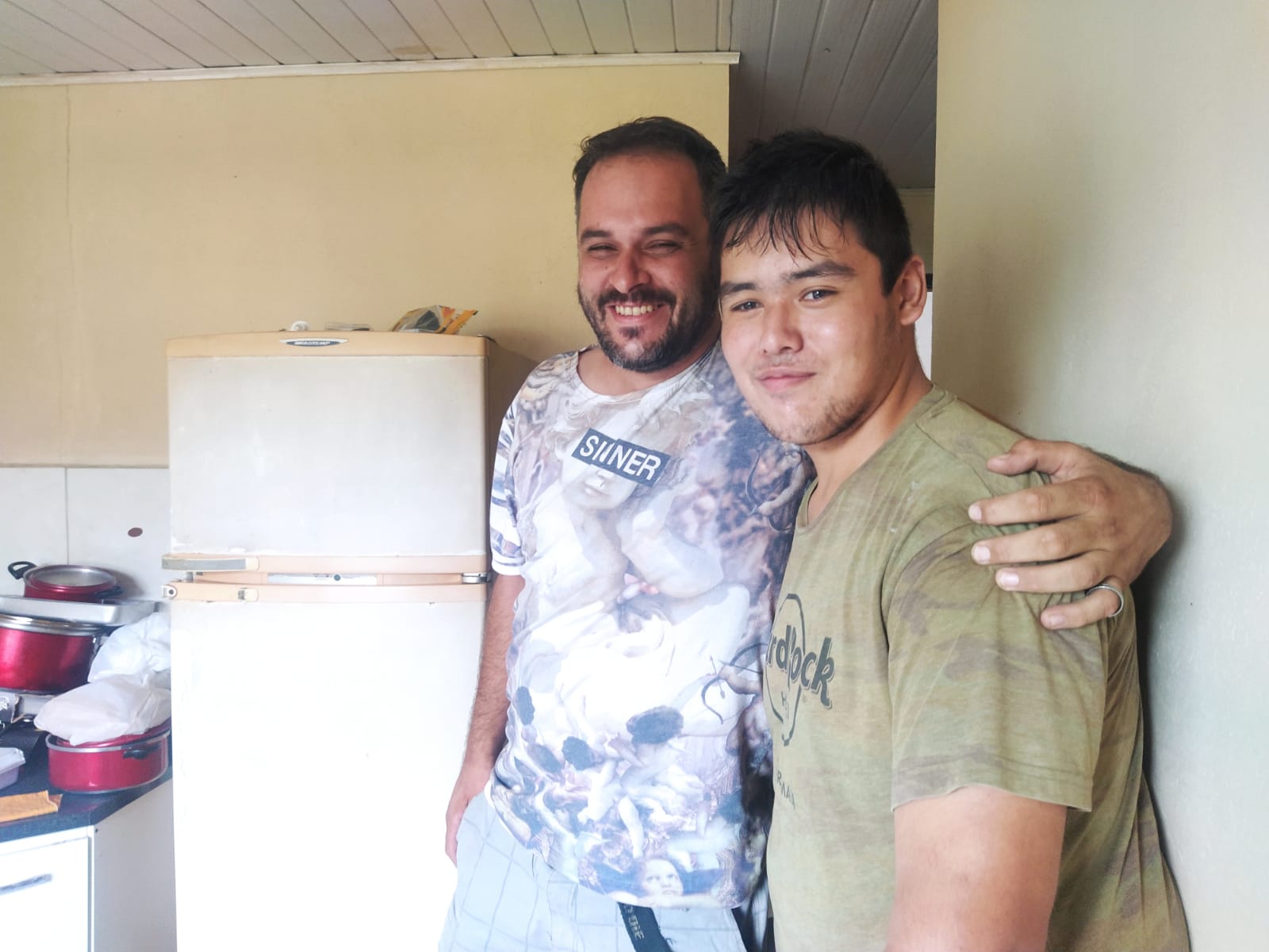 Para chegar em nossa cidade o garoto viajou de ônibus do Paraná até Santa Catarina.