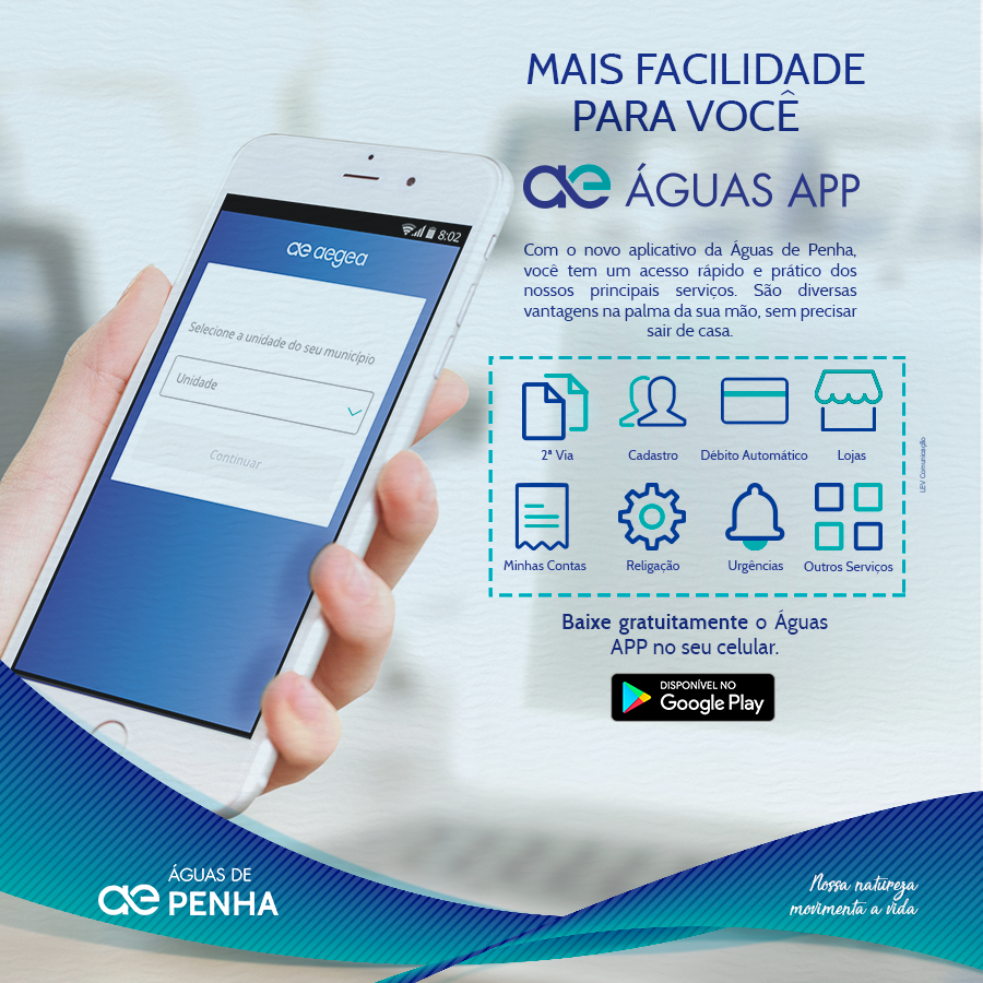 O aplicativo da concessionária é gratuito e pode ser encontrado tanto no Google Play quanto no APP Store: basta fazer a busca por ÁGUAS APP. O objetivo desta plataforma é de tornar o atendimento mais rápido e prático, facilitando o contato com os clientes e permitindo que possam ter serviços pelo celular. E a 2ª via é apenas um dos serviços disponíveis pelo APP.