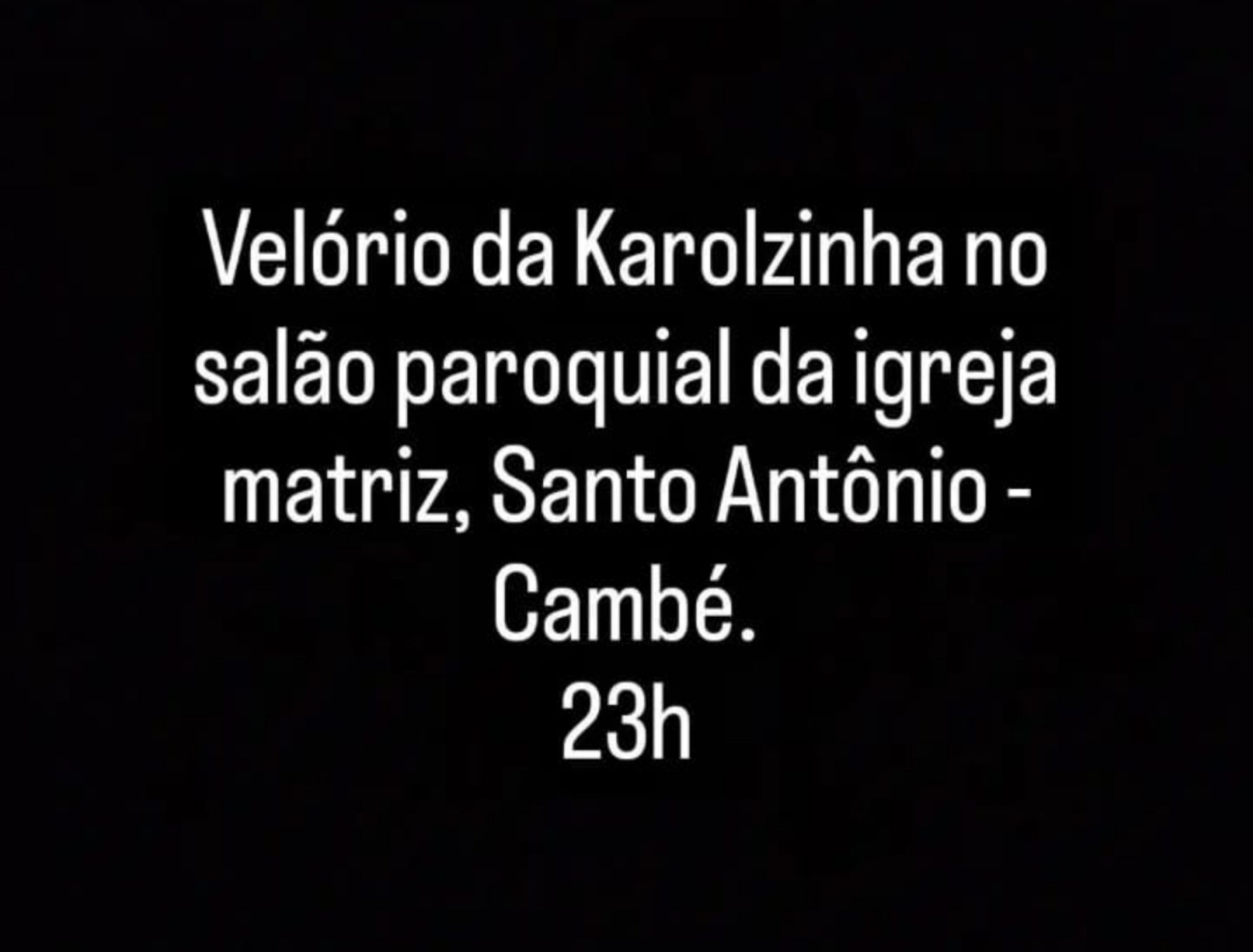 Recebemos a informação que o velório de Karolizinha vai ser no Salão Paroquial da Igreja Matriz no Centro de Cambé-PR.