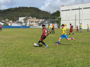 Com os estudantes de Balneário Camboriú vestidos com o uniforme do Brasil, os jogos amistosos iniciaram após os dois hinos nacionais e foram marcados pela diversão e integração entre os times.