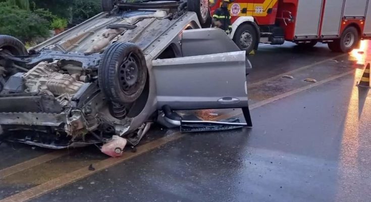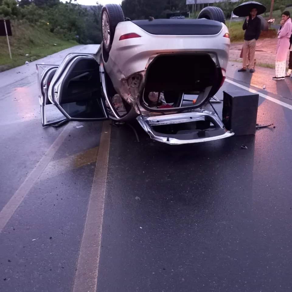 Uma jovem de 22 anos de idade ficou inconsciente após capotar um veículo Ford Fiesta, placas de Urussanga, na SC-108, em Criciúma.