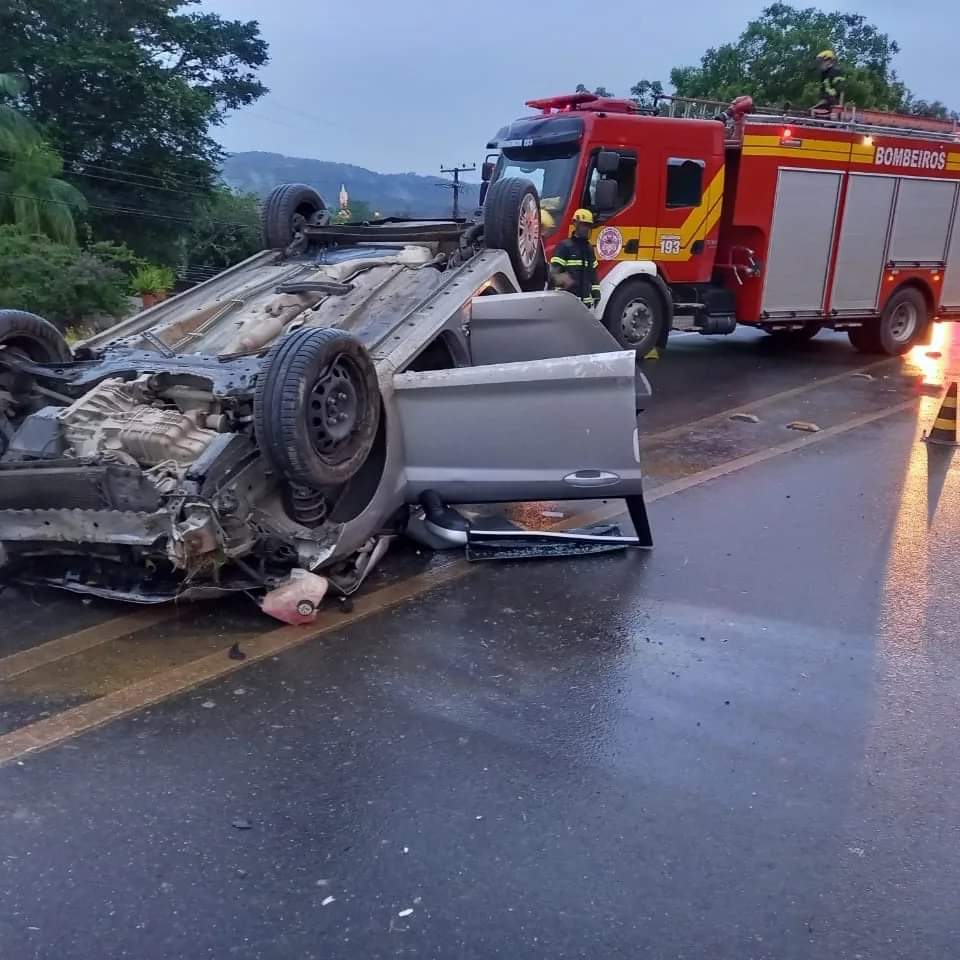 Uma jovem de 22 anos de idade ficou inconsciente após capotar um veículo Ford Fiesta, placas de Urussanga, na SC-108, em Criciúma.