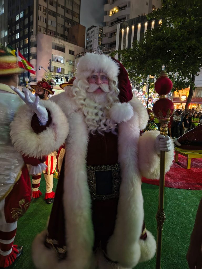 O público também acompanhou de perto a chegada do Papai Noel, que recebeu simbolicamente a chave da cidade das mãos da prefeita. Antes do acendimento das luzes natalinas de forma simultânea na Avenida Atlântica e Praça Almirante Tamandaré, um pocket show fez uma prévia do que a população pode esperar das apresentações que serão feitas durante os desfiles natalinos a partir de quarta-feira (19).