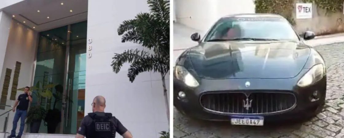 Duas pessoas são presas pela PF. Elas ostentam vida luxuosa para atrair clientes para pirâmide financeira em Balneário Camboriú. Um Maserati avaliado em quase meio milhão de reais foi apreendido, junto com R$ 130 mil em espécie. (Foto: Policia Civil, …