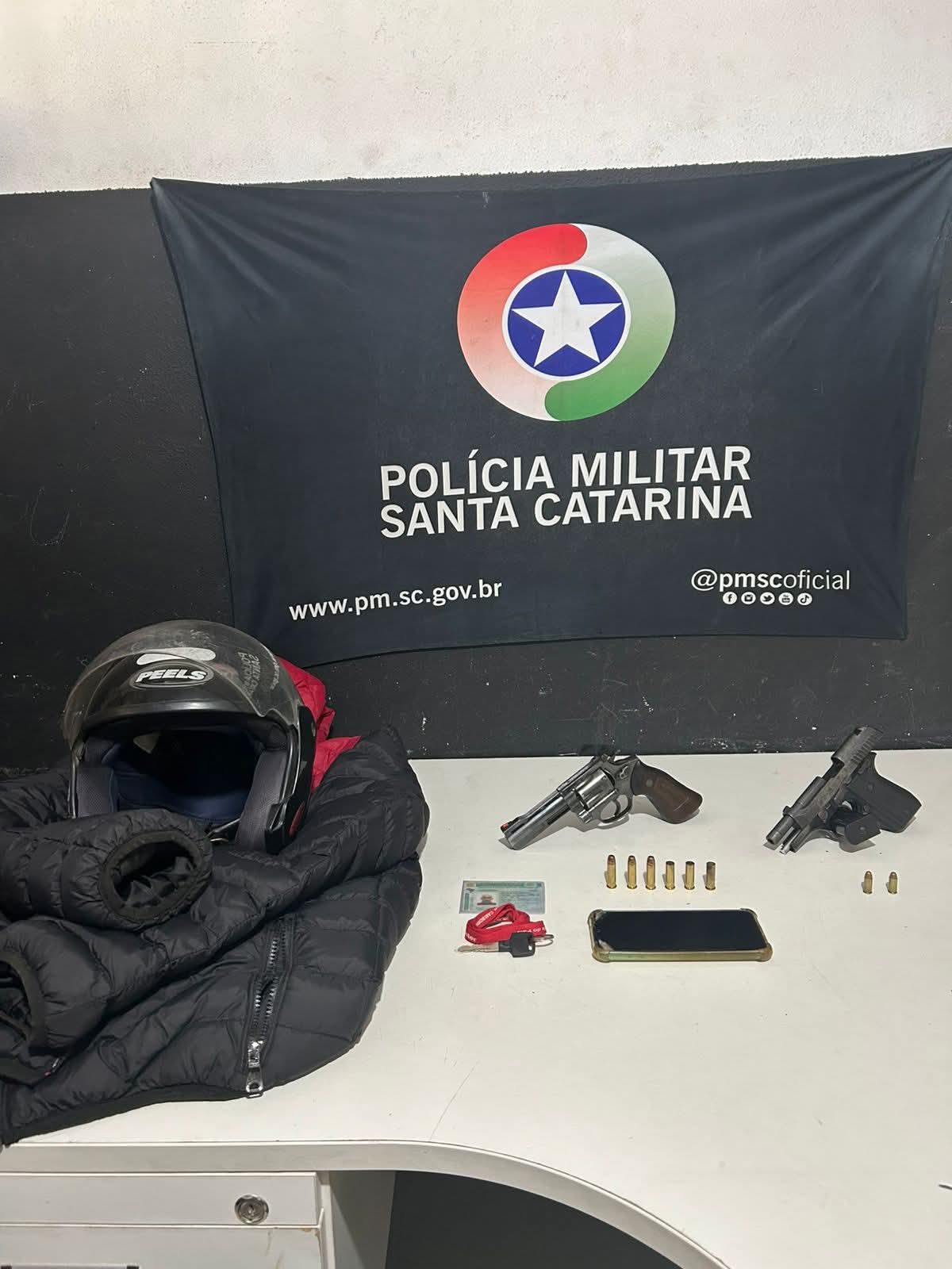 Durante a busca no local indicado, os policiais encontraram um revólver Rossi calibre .38, municiado com três munições intactas e três deflagradas, além de uma pistola Taurus calibre .32, com registro de furto datado de 25 de janeiro de 2016. As vestes utilizadas no momento do crime também foram recuperadas na residência.