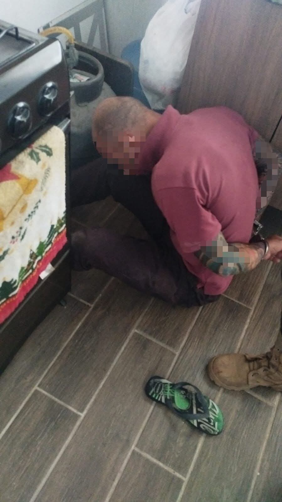 Os policiais realizaram averiguações e encontraram o autor dentro da kitinete. Ao ser abordado e questionado sobre o homicídio e a arma utilizada, ele confessou a autoria do crime e indicou a localização da arma em um cabideiro, onde estava pendurada com uma cinta elástica e coberta por roupas.