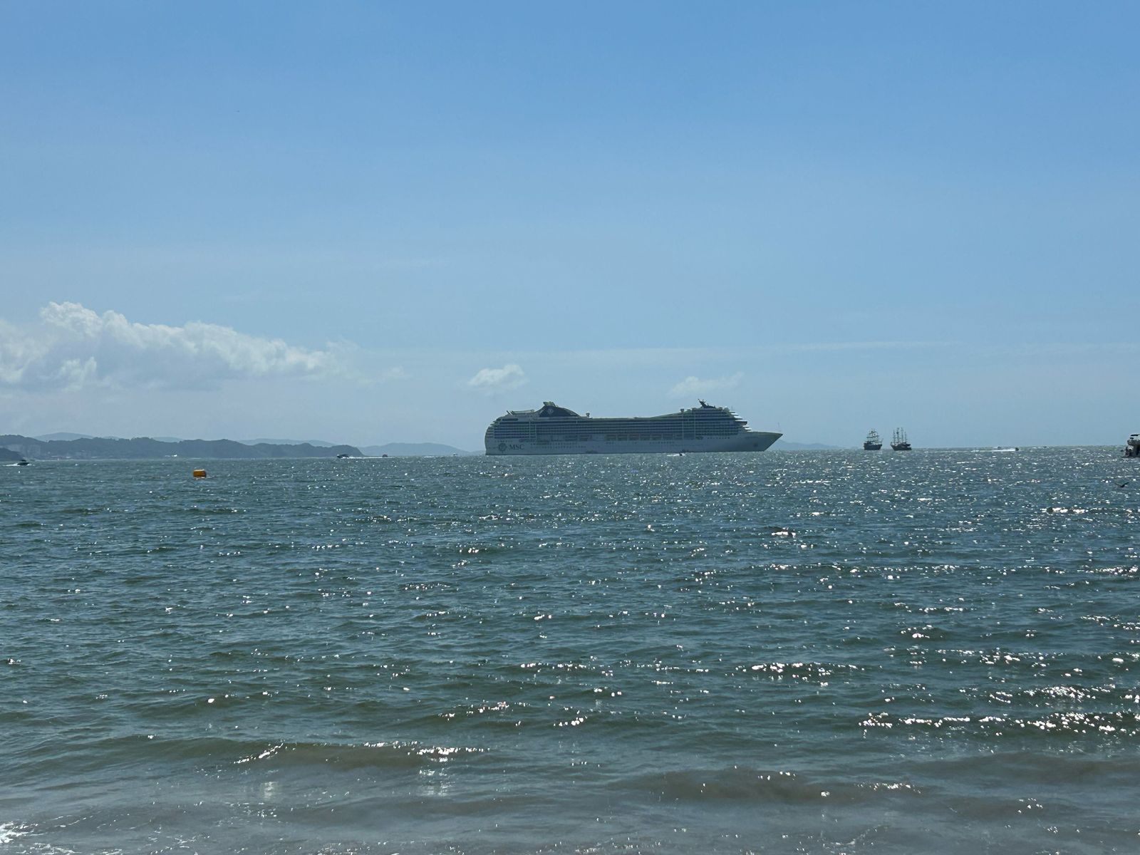 “Hoje recebemos os dois navios que vão fechar a temporada. O navio Marina, que veio de Punta del Este, no Uruguai, e segue para São Francisco do Sul, transporta 762 tripulantes e 1.179 passageiros. É um navio de alto luxo e já passou por Balneário Camboriú anteriormente. O outro navio é o MSC Poesia, que veio de Montevidéu, capital do Uruguai, e segue para Ilhabela, em São Paulo, com 933 tripulantes e 2.887 passageiros”, explicou Bauer.