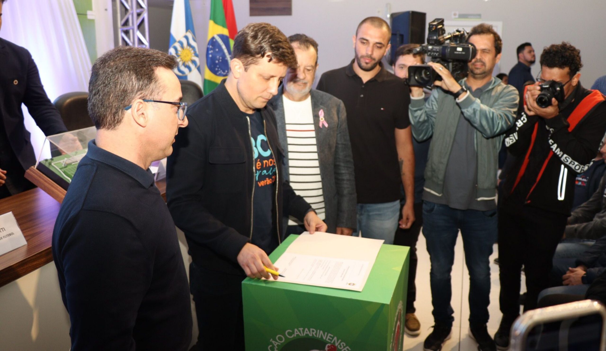 Na noite de quinta-feira, (19), foi oficialmente assinada a ordem de serviço que marca o início da construção do Centro de Desenvolvimento de Futebol da CBF. Esse complexo esportivo será erguido através de uma parceria entre a Confederação Brasileira de Futebol, a administração municipal e a Federação Catarinense de Futebol. O empreendimento, pioneiro na região Sul do Brasil, será financiado com recursos provenientes do legado da Copa do Mundo de 2014.