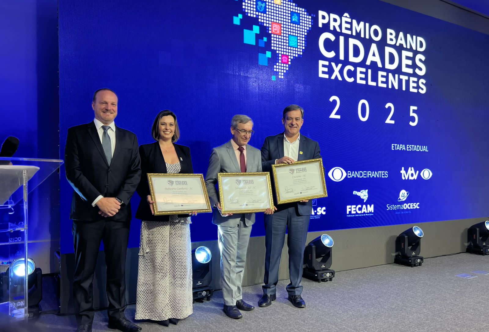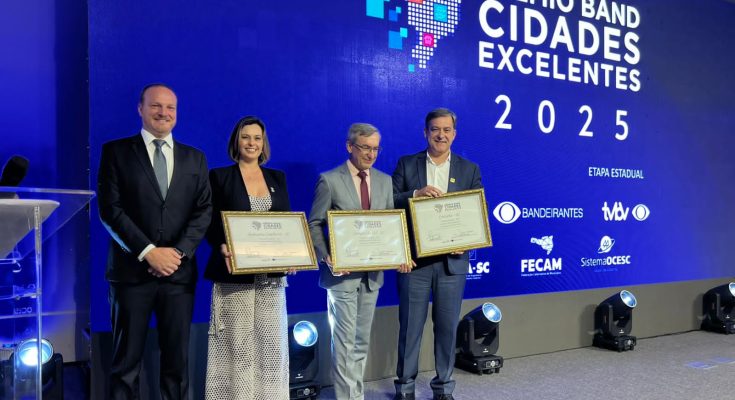 Balneário Camboriú foi uma das vencedoras do Prêmio Band Cidades Excelentes, entregue na noite desta terça-feira (18), em Florianópolis. O município foi o grande vencedor da categoria Infraestrutura e Mobilidade Urbana – acima de 100 mil habitantes. Entre as cidades finalistas estavam Jaraguá do Sul e Criciúma.