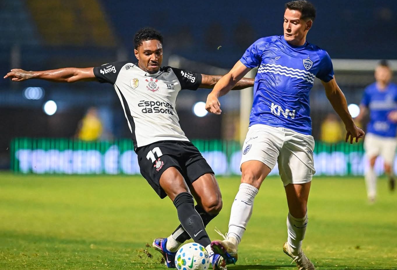 O jogo começou equilibrado, com o Barra pressionando e criando chances claras. A defesa, comandada por seus zagueiros firmes, segurou as investidas corintianas até os 41 minutos do primeiro tempo, quando o inglês Jesse Lingard, ex-Manchester United, abriu o placar com um belo chute de fora da área.
