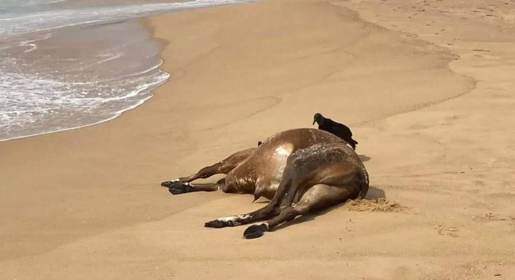 Boi de Botuverá aparece morto na praia do Estaleiro em Balneário Camboriú