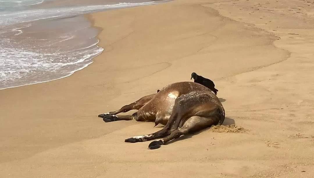 Banhistas da praia do Estaleiro de Balneário Camboriú, foram surpreendidos com um boi morto na manhã desta segunda-feira (20).
