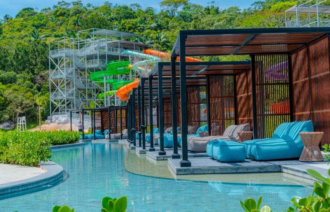 O local surpreende por contar com praia artificial, bar molhado, redário, espaço baby e toboáguas translúcidos, os mais modernos e instagramaveis do mercado.