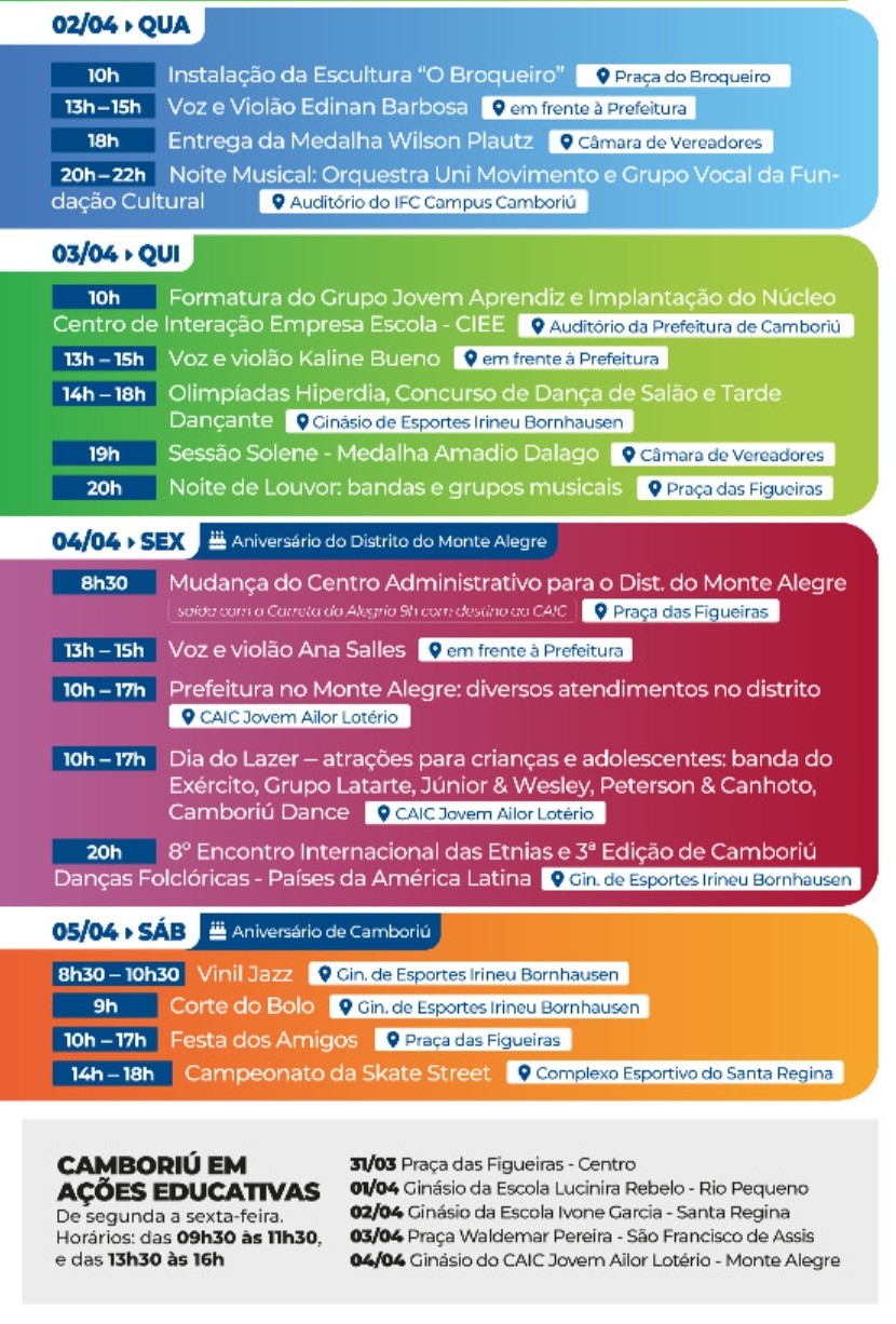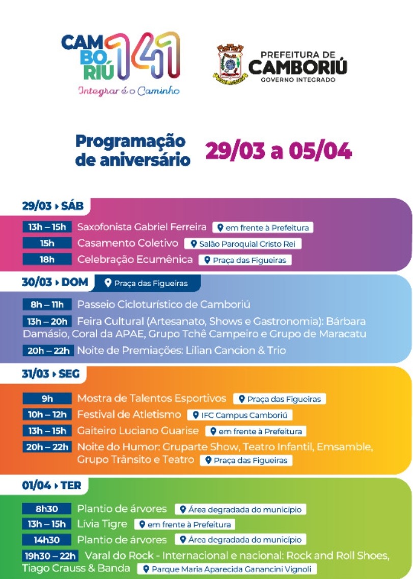 Confira a programação completa do aniversário de 141 anos de Camboriú (em anexo) e não perca a chance de fazer parte dessa celebração histórica!