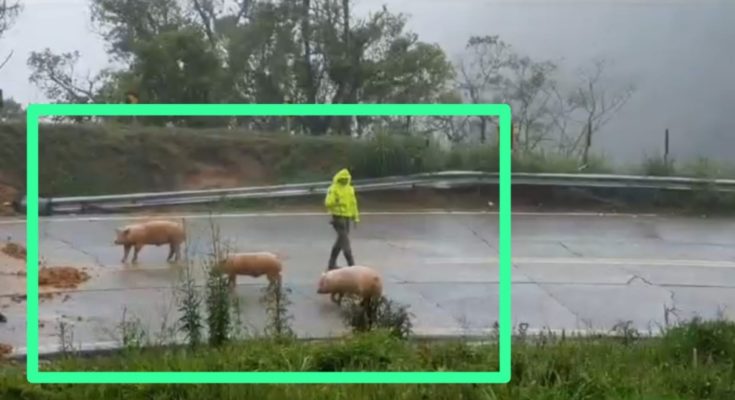 Relatos dizem que motoristas estão parados na Serra Dona Francisca desde meio dia, para que os suínos que sobreviveram num tombamento do caminhão que os transportava, sejam resgatados.