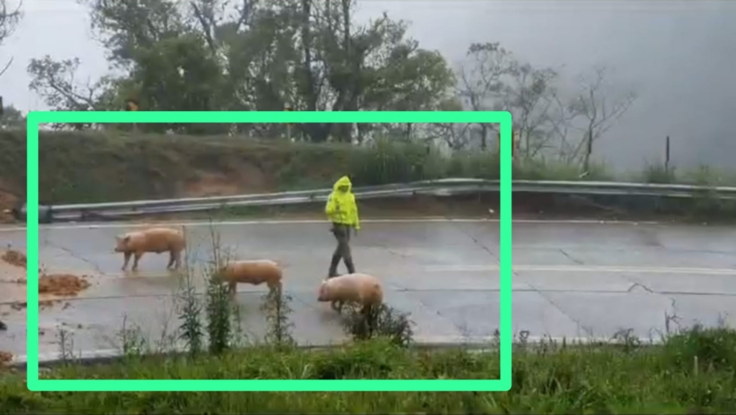 Relatos dizem que motoristas estão parados na Serra Dona Francisca desde meio dia, para que os suínos que sobreviveram num tombamento do caminhão que os transportava, sejam resgatados.