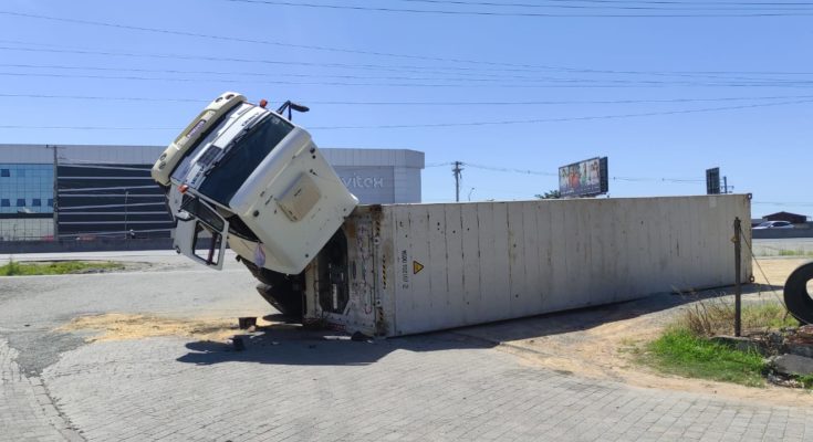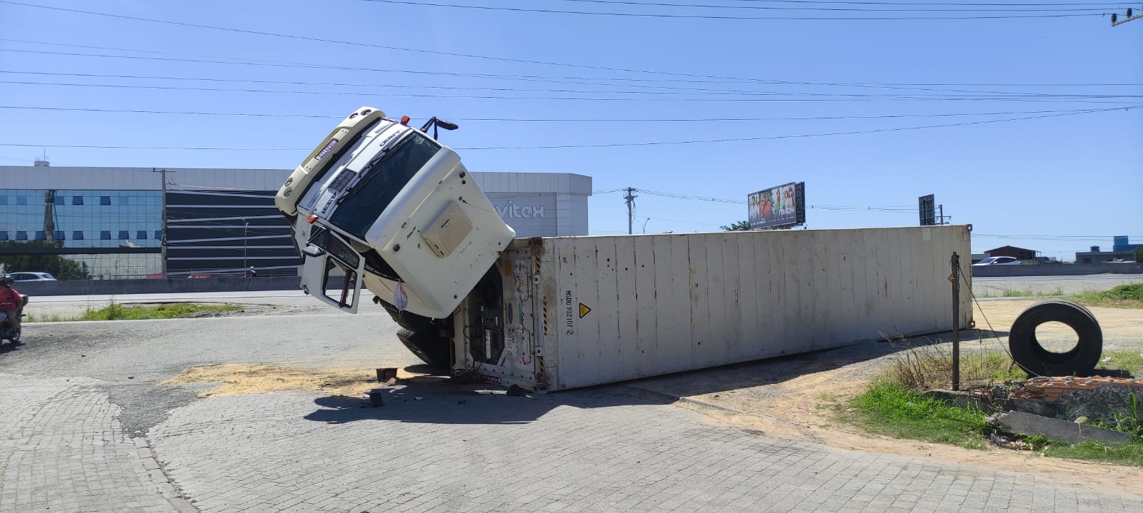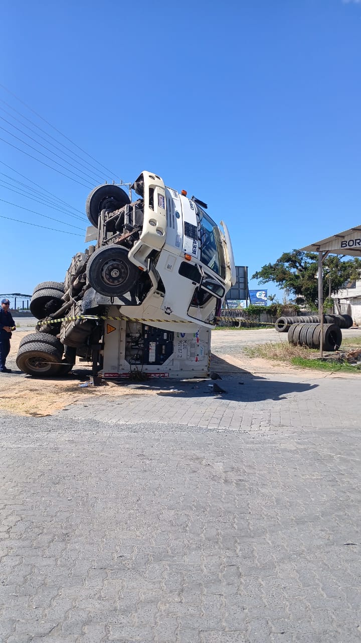 Um caminhão tombou próximo ao posto Ibiza, e o trem de socorro de Navegantes foi acionado. Ao chegar, a equipe encontrou a vítima fora do veículo, sendo atendida pelos Bombeiros Voluntários de Navegantes.