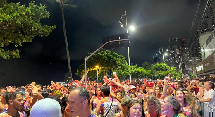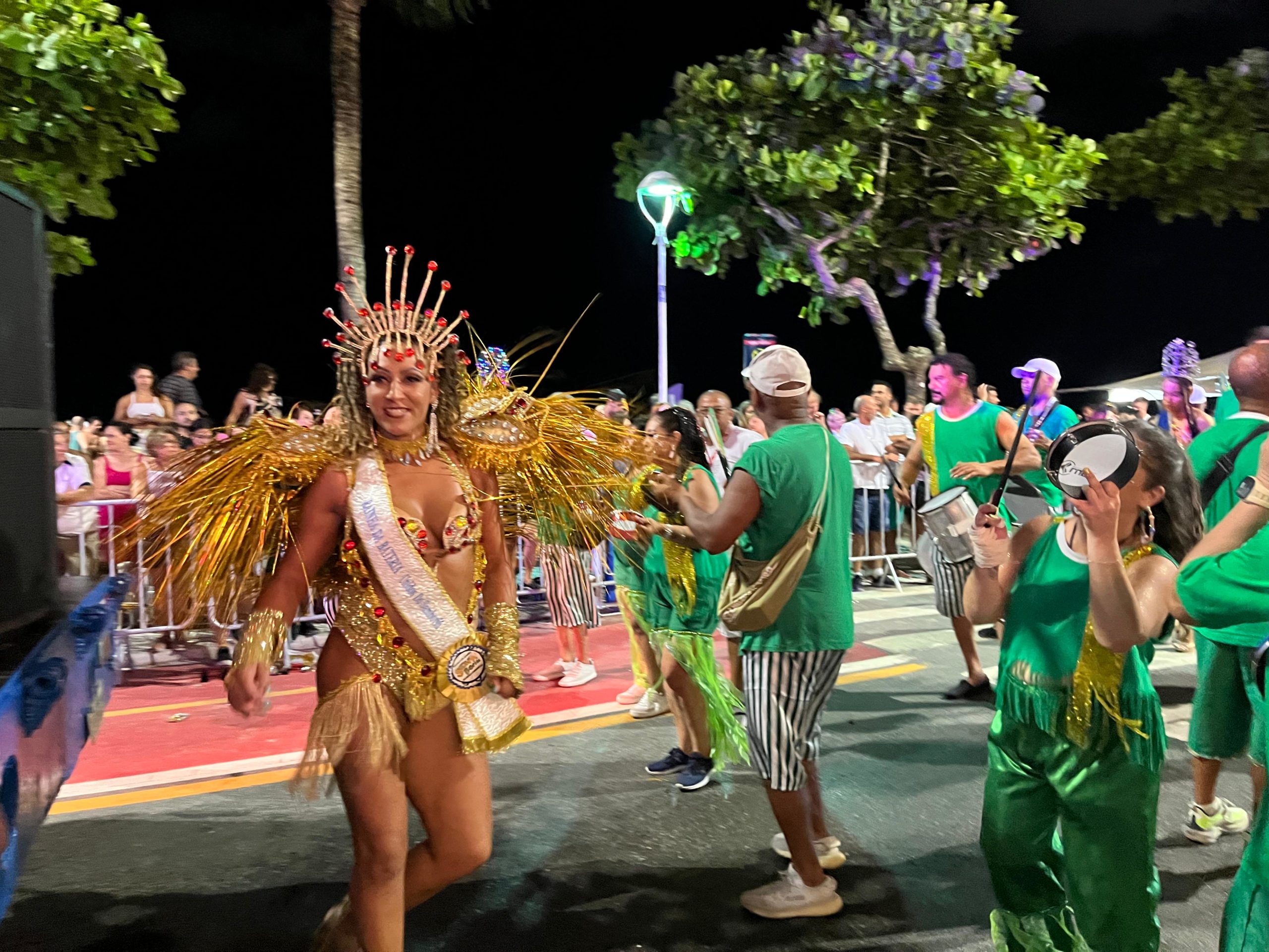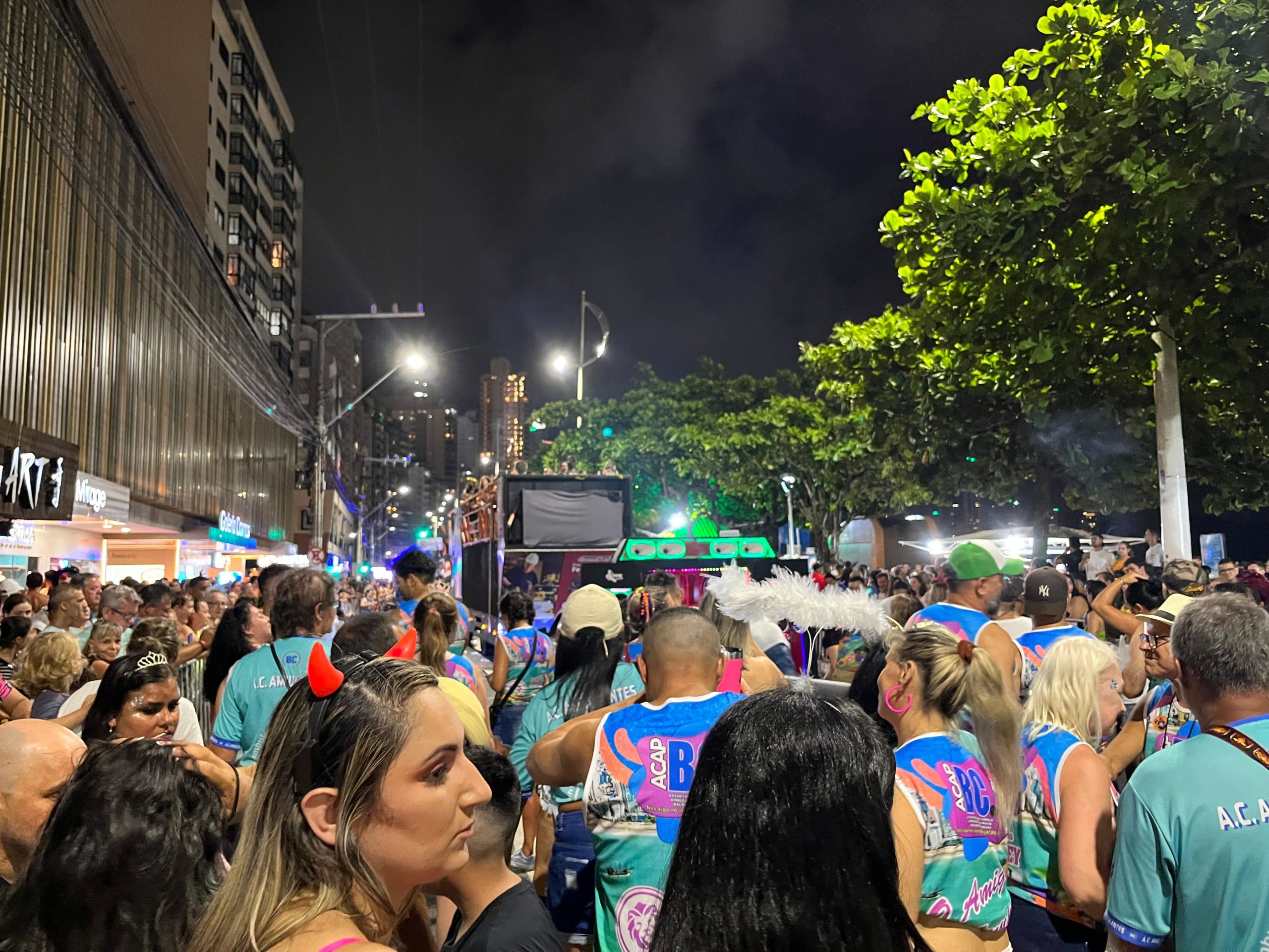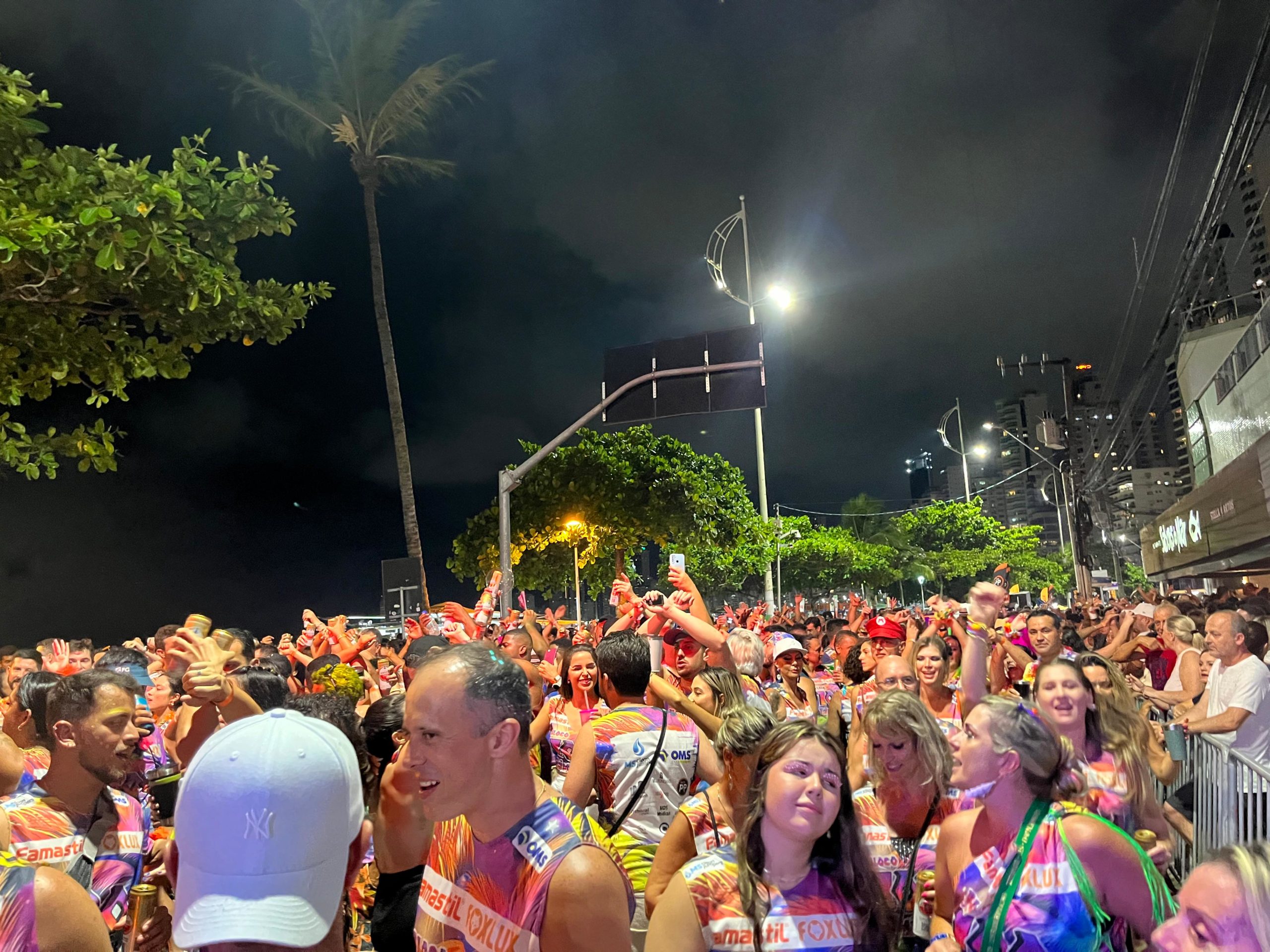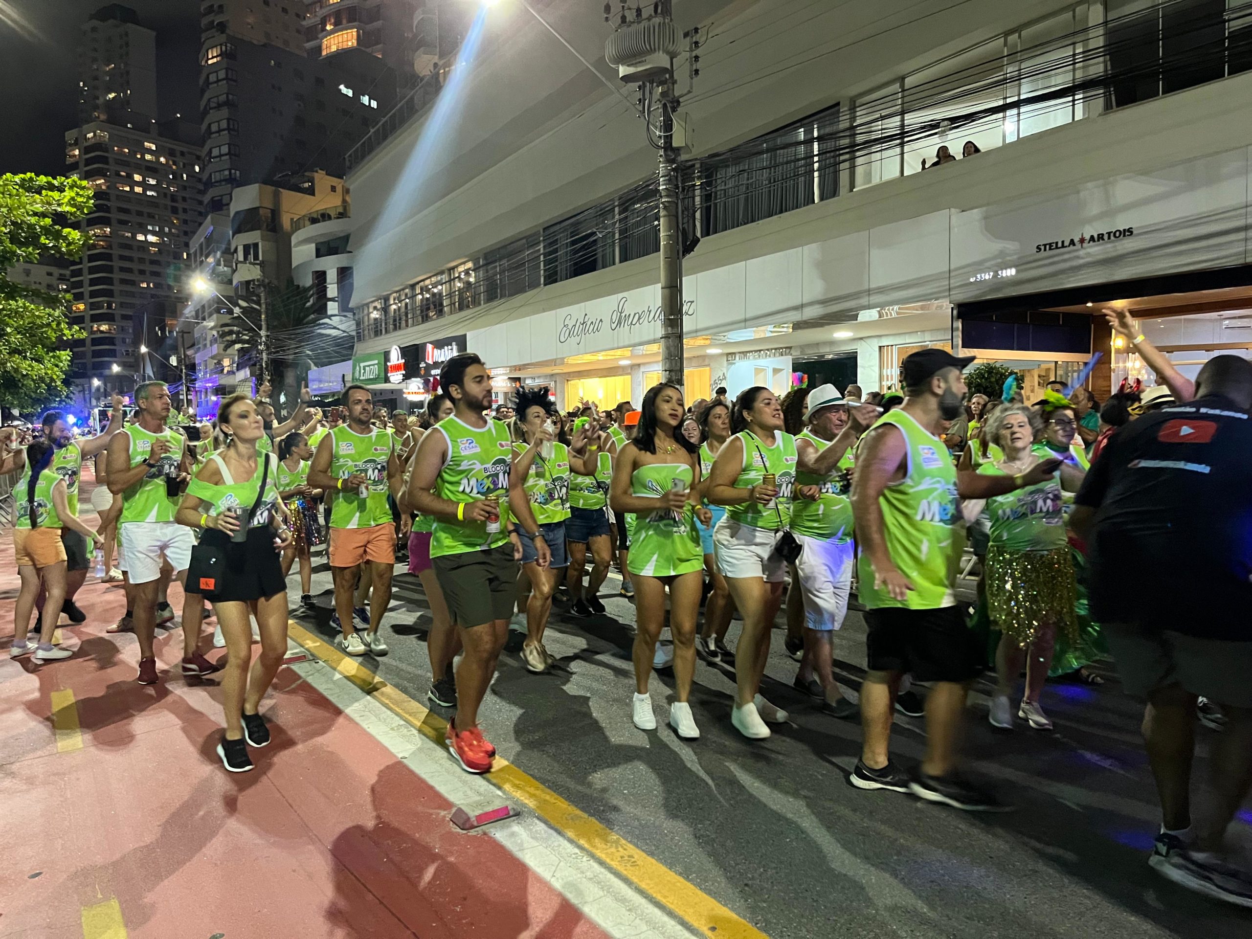 A primeira noite do carnaval de rua de Balneário Camboriú, neste sábado (10), atraiu mais de 25 mil pessoas na orla da praia central, segundo estimativas da Secretaria de Turismo. A abertura ficou por conta da Corte da Liga Carnavalesca, tendo como rainha Sabrina Roncelli Kofahl, o rei momo Ismael Santos Sesinando da Silva e a primeira princesa Aline Walkiria Mussato. Na sequência, seis blocos esbanjaram muita folia e descontração: Mexe Mexe, Siri Sarado, Mas Bah, Xinellis, 100 Limites, Xeru di Coco e Samboriú.