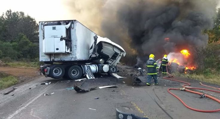O acidente foi registrado na manhã desta terça-feira (21), após uma colisão entre dois caminhões na BR-282, em Ponte Serrada no sentido ao Trevão do Irani, no Oeste de Santa Catarina.