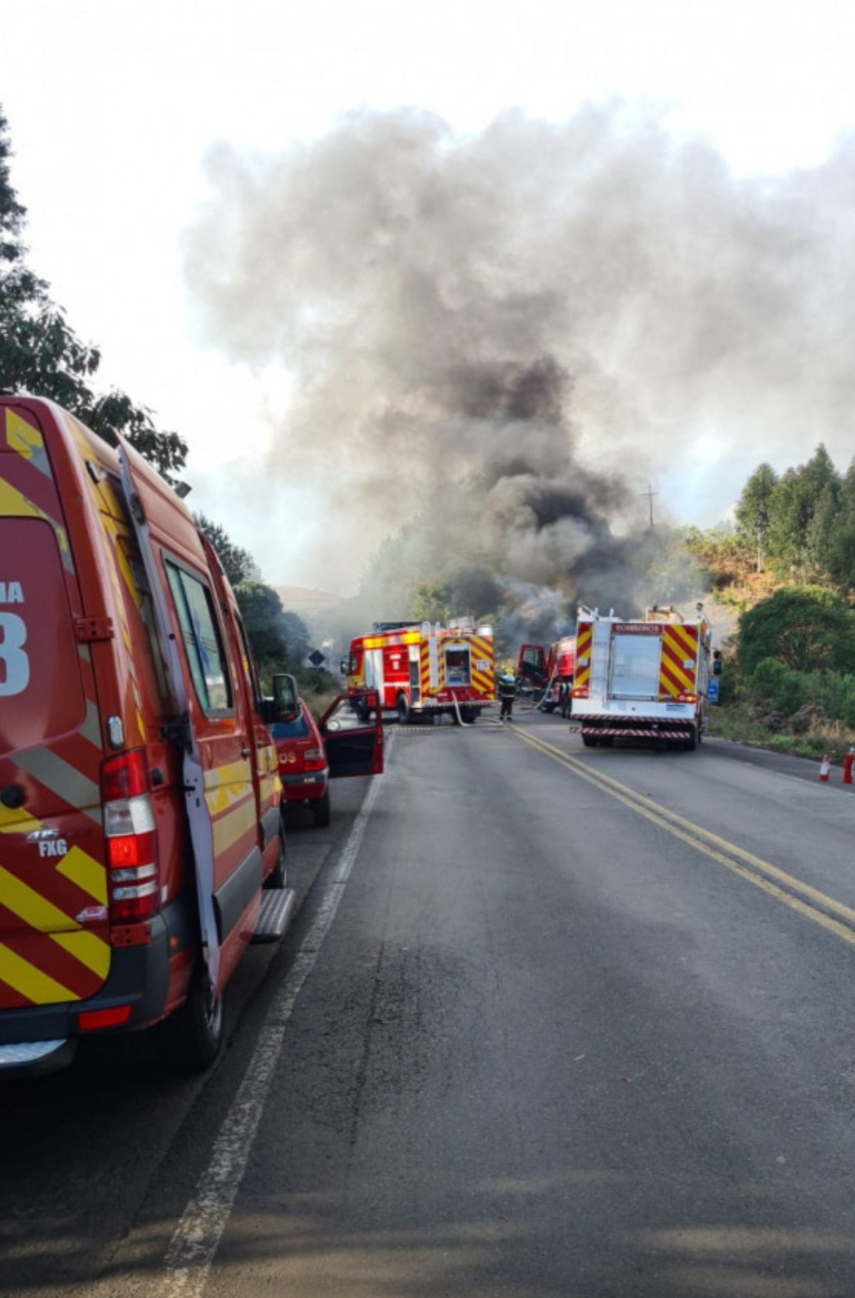 O corpo do motorista com caminhão de câmara fria foi ejetado para fora do veículo e posteriormente foi recolhido pelo Samu. Já o corpo do outro condutor, permanece dentro do veículo que transportava combustível. A carreta frigorífica tem placas de Chapecó e o caminhão de combustível pertence à empresa MaxSul.