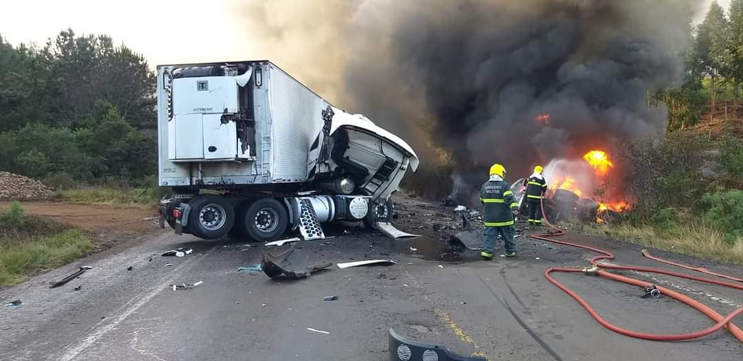 O corpo do motorista com caminhão de câmara fria foi ejetado para fora do veículo e posteriormente foi recolhido pelo Samu. Já o corpo do outro condutor, permanece dentro do veículo que transportava combustível. A carreta frigorífica tem placas de Chapecó e o caminhão de combustível pertence à empresa MaxSul.