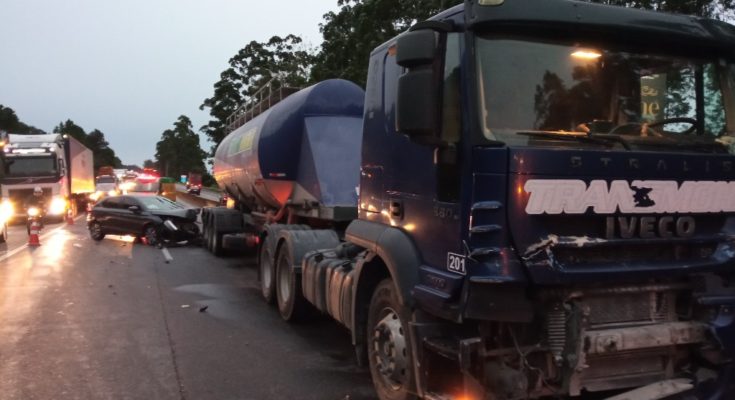 Uma colisão traseira envolvendo uma carreta Iveco de Blumenau, um Honda/City de Joinville e um Ford/Fiesta de Caxias do Sul/RS deixou o local bastante congestionado.