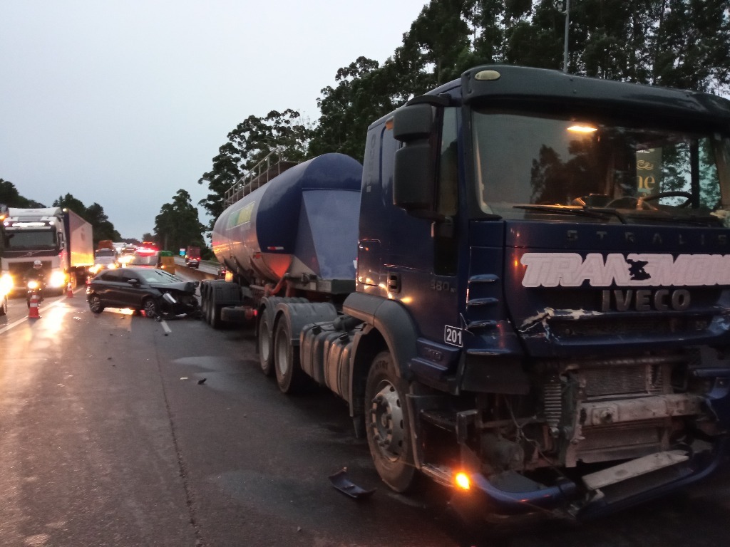 Uma colisão traseira envolvendo uma carreta Iveco de Blumenau, um Honda/City de Joinville e um Ford/Fiesta de Caxias do Sul/RS deixou o local bastante congestionado.