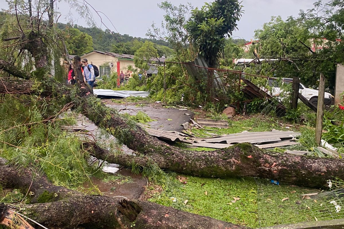 Uma situação dramática foi registrada no distrito de Jorge Lacerda, onde uma casa foi completamente arrancada pelos ventos, deixando duas pessoas feridas que foram socorridas e encaminhadas para atendimento médico.