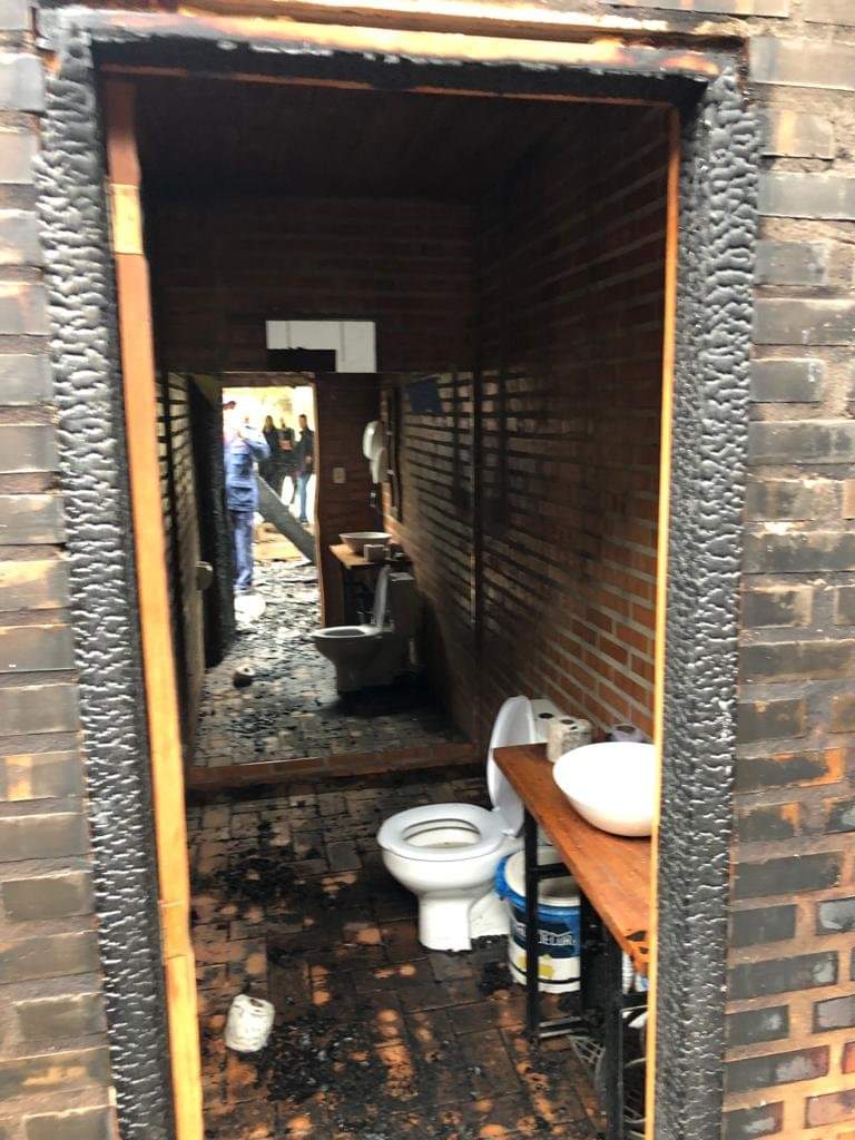 Ao chegar no local foi contatado que o interior da edificação estava tomado pelas chamas, a energia estava cortada e não havia ninguém no interior da propriedade, apenas um cachorro preso em uns dos banheiros, sendo que o local não foi atingido pelas chamas e o animal foi resgatado sem ferimentos.