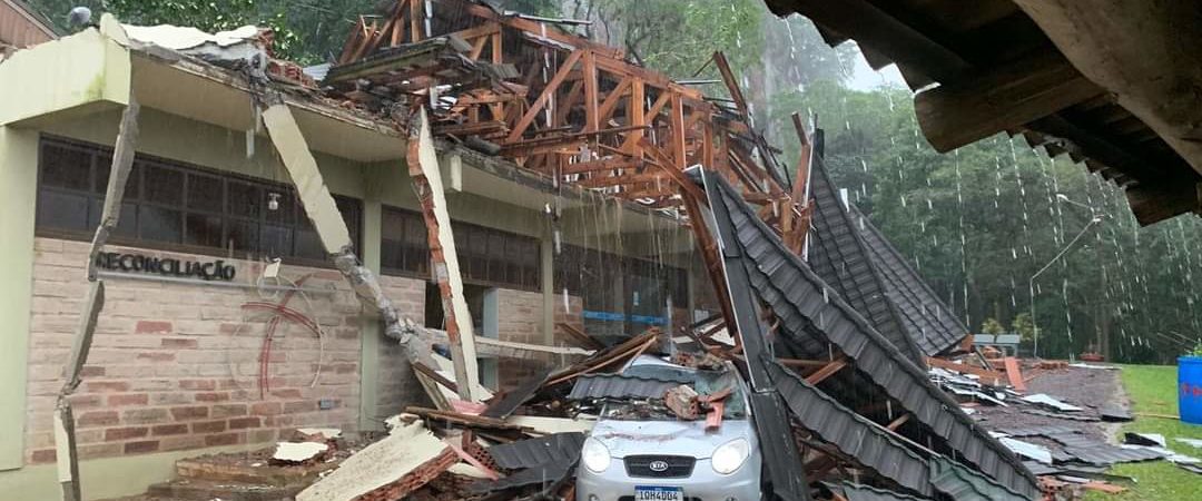 Deslizamento de terra causa desabamento no Santuário de uma Gruta no RS