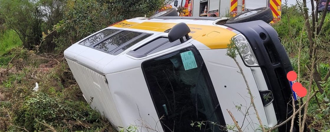 Van escolar tomba e crianças ficam feridas em acidente na Serra Catarinense