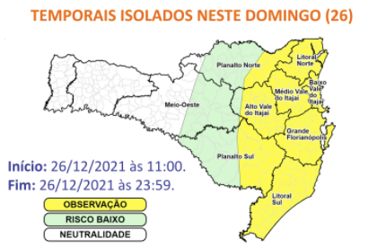 A Defesa Civil de Santa Catarina não confirmou, até o final da tarde, registros mais graves por conta da chuva.