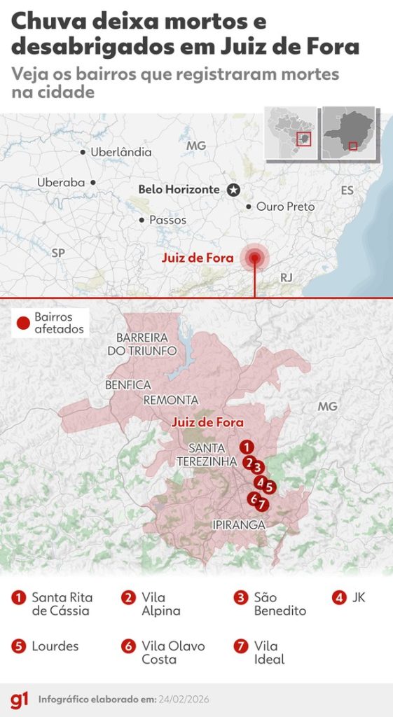 Em Juiz de Fora, o epicentro da calamidade, 16 pessoas morreram e 440 foram desalojadas. A prefeita Margarida Salomão (PT) decretou estado de emergência na madrugada desta terça (24) e luto oficial de três dias.
