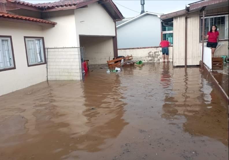 Vários bairros solicitaram apoio, levando a guarnição a priorizar duas frentes de atuação. Na primeira, uma residência foi impactada por um alagamento de aproximadamente 80 centímetros, afetando não apenas a estrutura, mas também veículos e residências vizinhas. Na Rua Carlos Kampfert, uma casa de madeira desabou sob a intensidade da água, desencadeando quedas de muros e pequenos deslizamentos de terrenos.