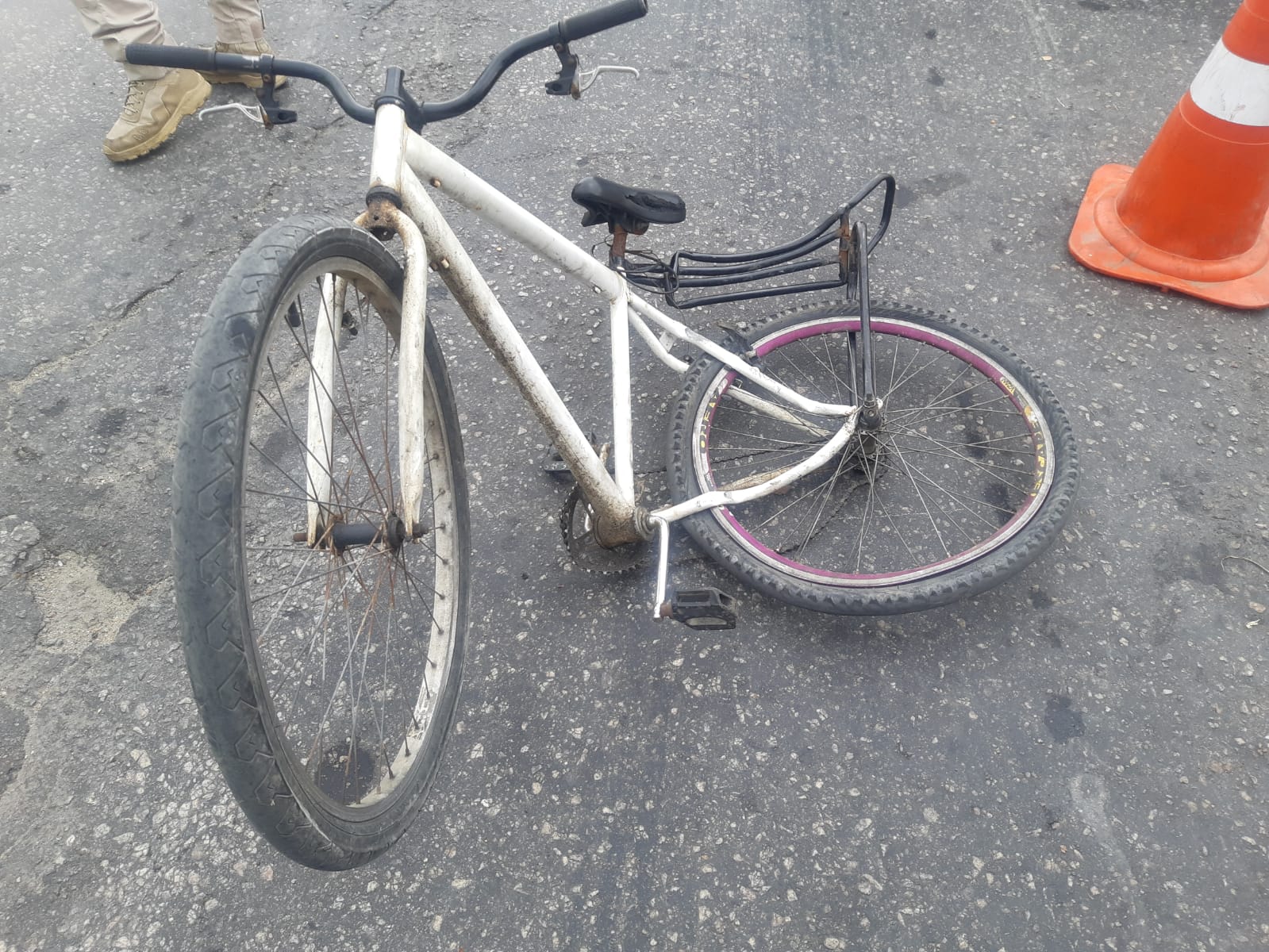 Ainda não se sabe ao certo as causas do acidente, mas o impacto foi tão forte que a bicicleta ficou completamente destruída, deixando evidente a gravidade da colisão.