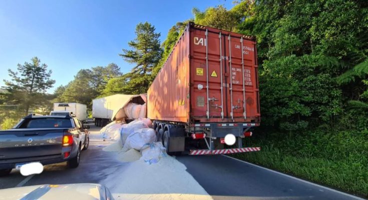 Parte da carga se espalhou pela pista e será necessário a retirada da carga, assim como a interrupção do trânsito para remoção dos veículos. A previsão é que agora, a partir das 11 horas o trânsito comece melhorar.