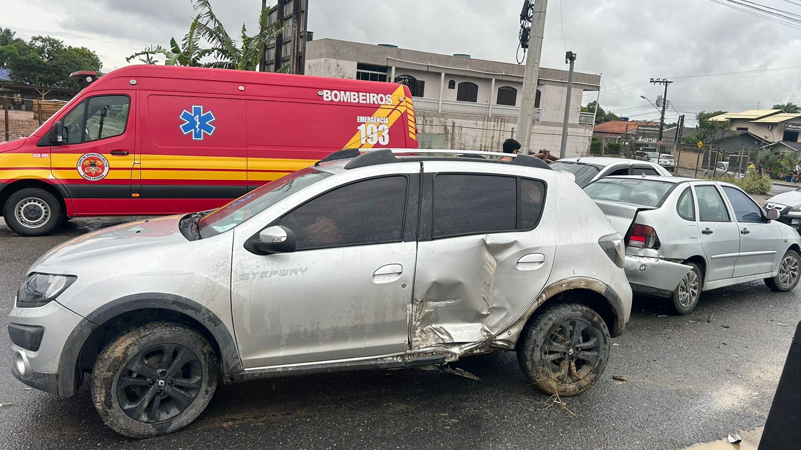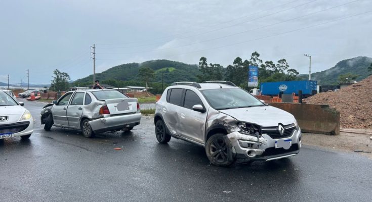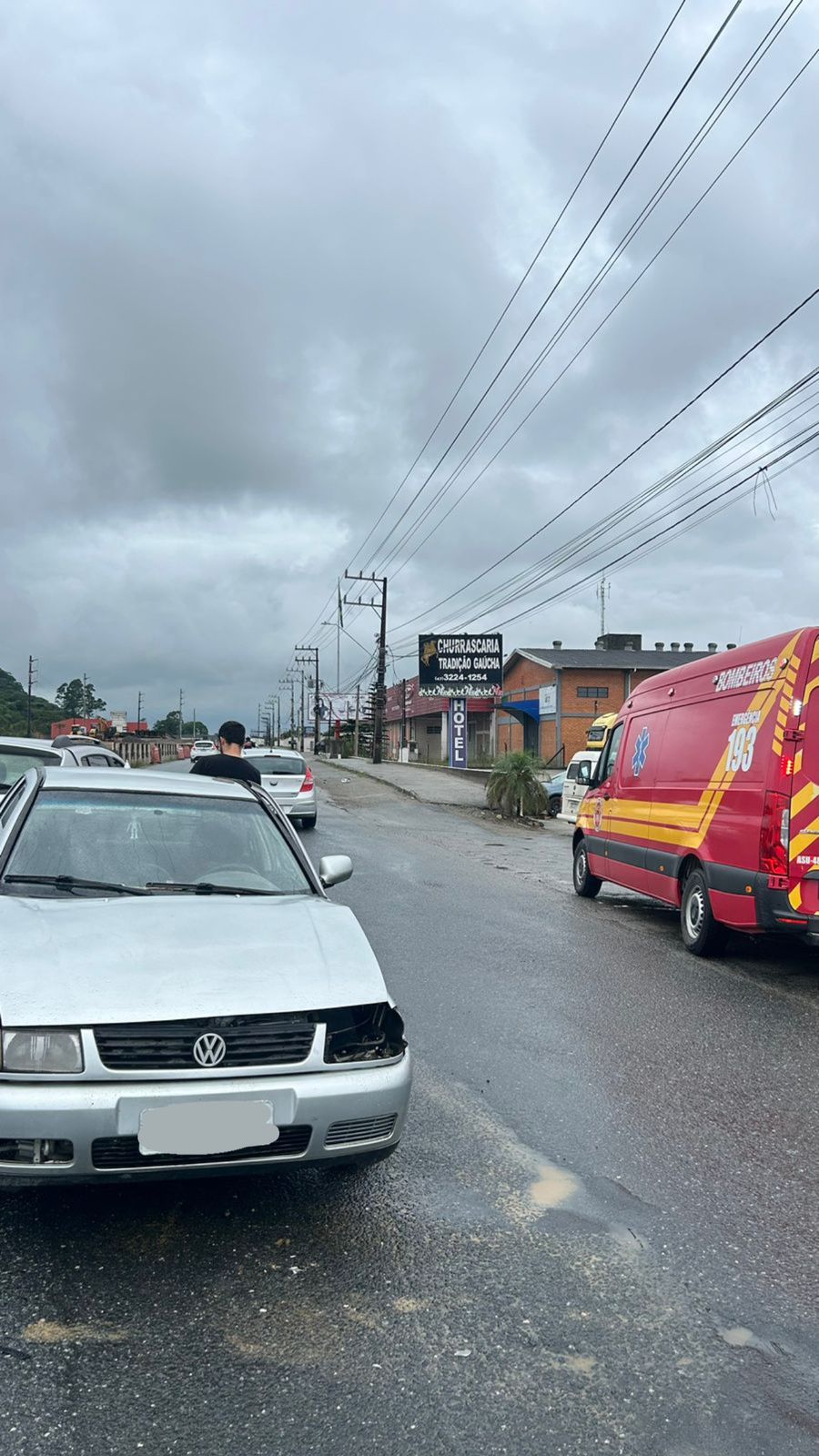 Na tarde deste sábado, por volta das 16h30, o Corpo de Bombeiros Militares de Navegantes foi acionado para atender a um acidente de trânsito envolvendo dois carros na BR-470, na altura da rotatória dos Machados.