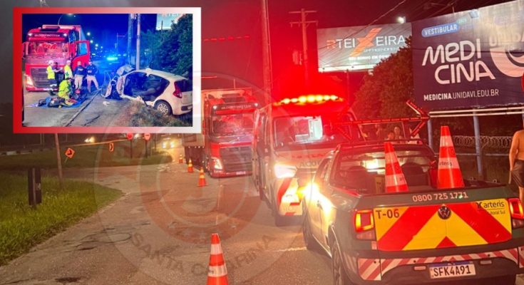 Camboriú, 1º de abril de 2026 – Um grave acidente de trânsito mobilizou equipes de resgate nessa madrugada de quarta-feira (1º) na Avenida Marginal Oeste, próximo ao Trend Parque, no quilômetro 131 da BR-101.