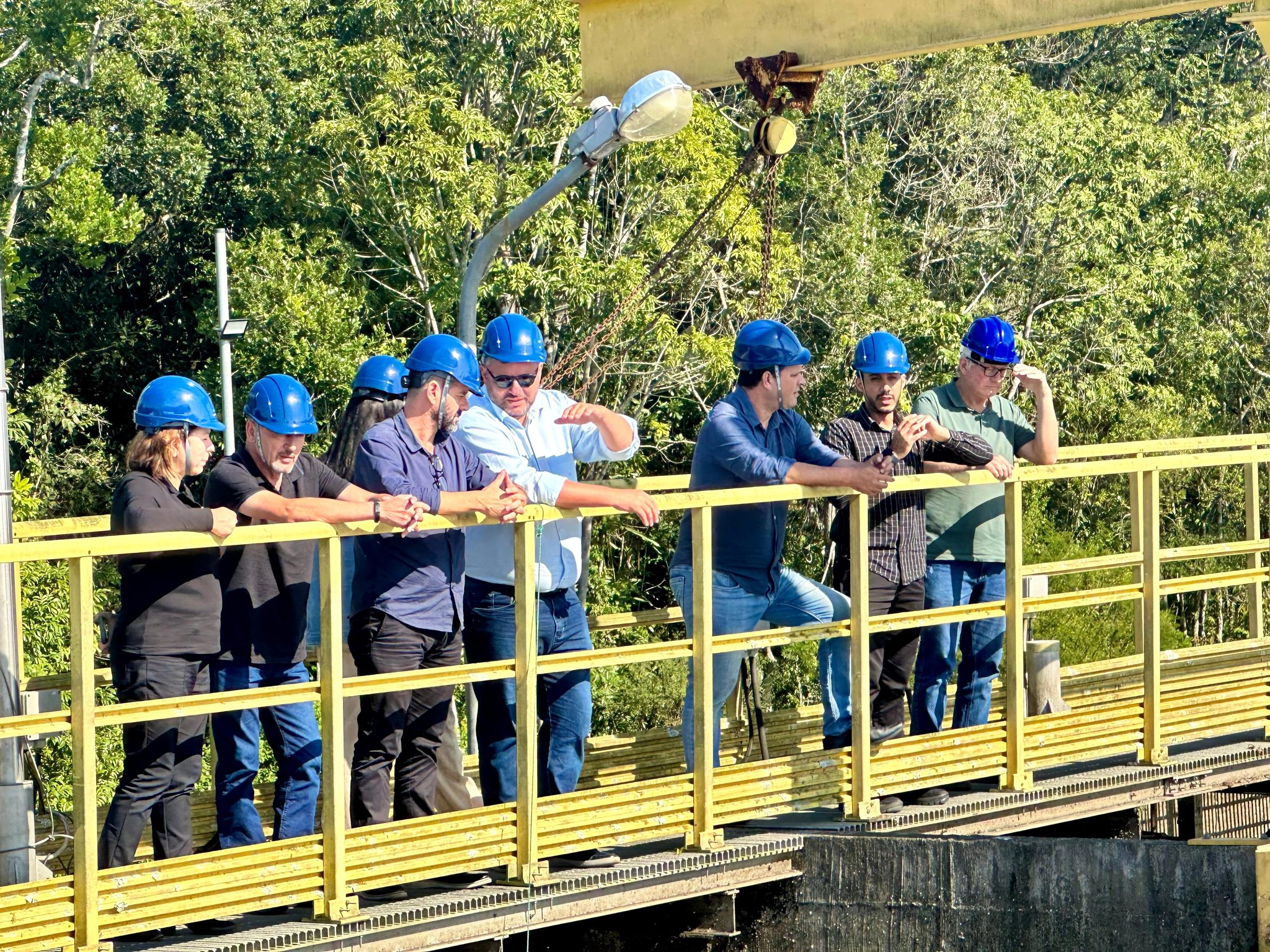 Prefeito Elcio Rogério Kuhnen reúne vice-prefeito, Junior Cardoso, secretários e vereadores para visitar a Estação de Tratamento de Esgoto (ETE) do grupo Aegea, em São Francisco do Sul. A comitiva foi conhecer o a ETE do mesmo modelo que será implantada em Camboriú.