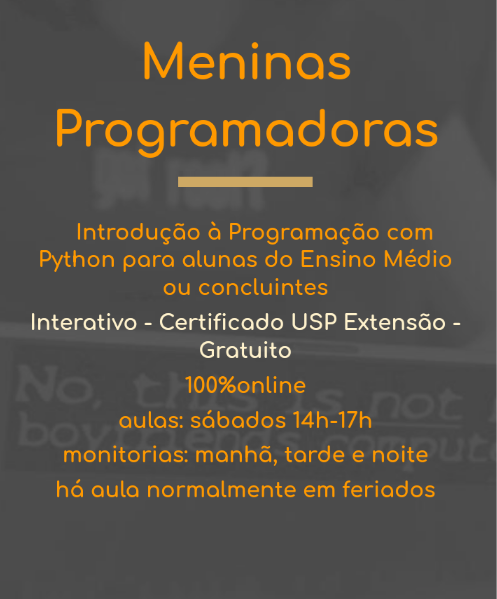 Curso Meninas Programadoras: introdução à programação com Python para alunas do ensino médio ou concluintes (25a turma)